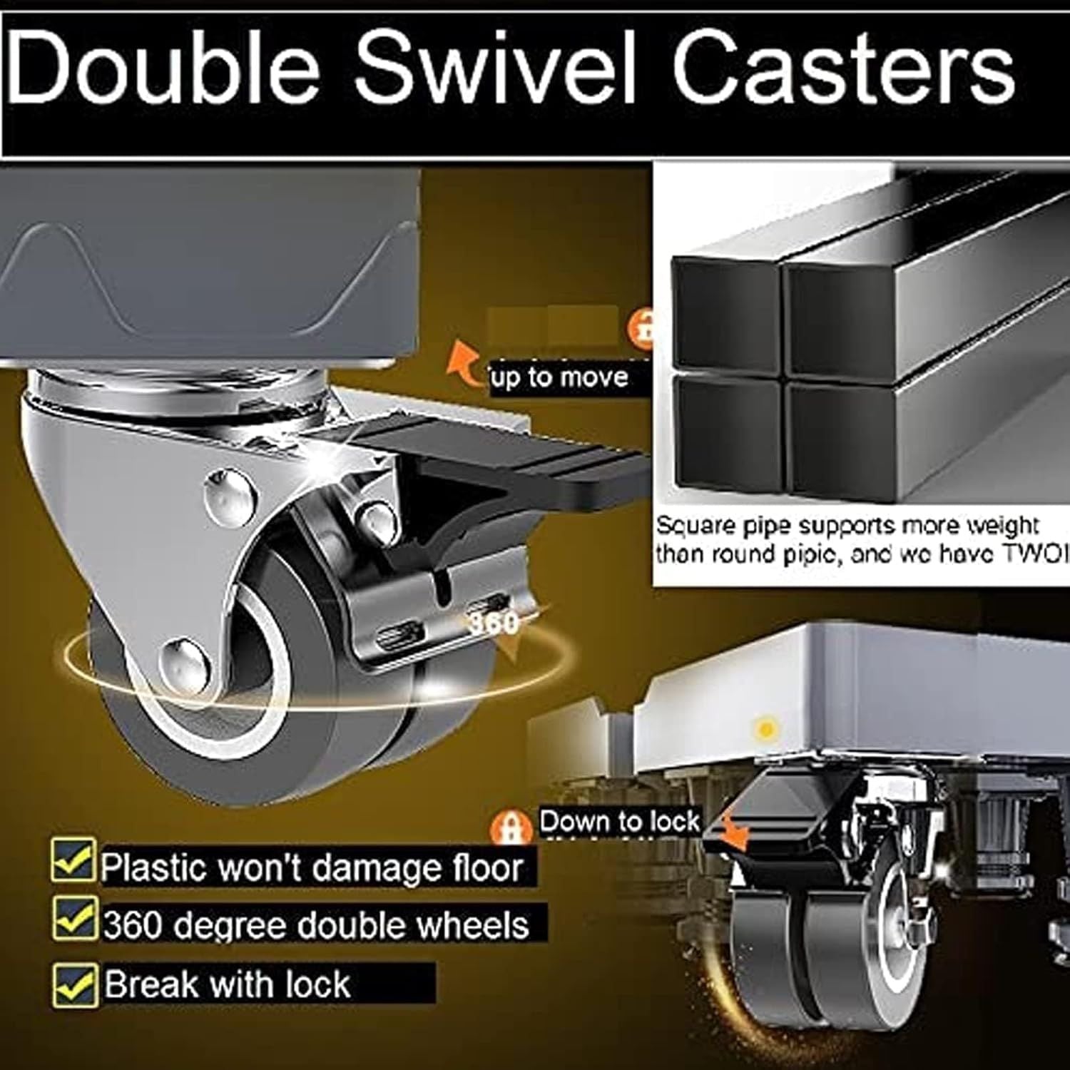 • ?EASY TO INSTALL AND MOVE?This washing machine stand is easy to assemble. Connect the tube, adjust it to a similar width as the furniture, close the buckle and put your furniture on it. It has 4 double swivel casters come with lock, can rotate 360 ??degrees, easy to move and stop. When the washing machine cart is in the right position, you can lock it and lift the washing machine by rotating your feet.